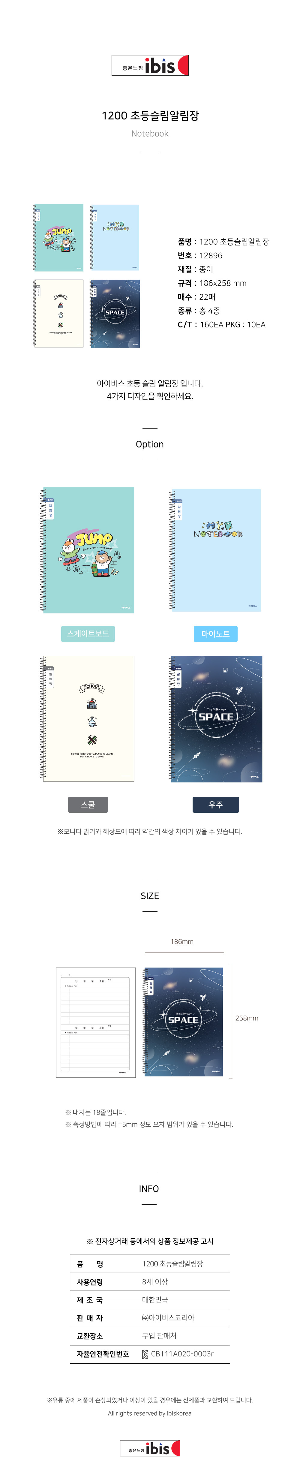home > 노트/지제품 > 노트 > 초등노트 > 1200 초등슬림알림장
