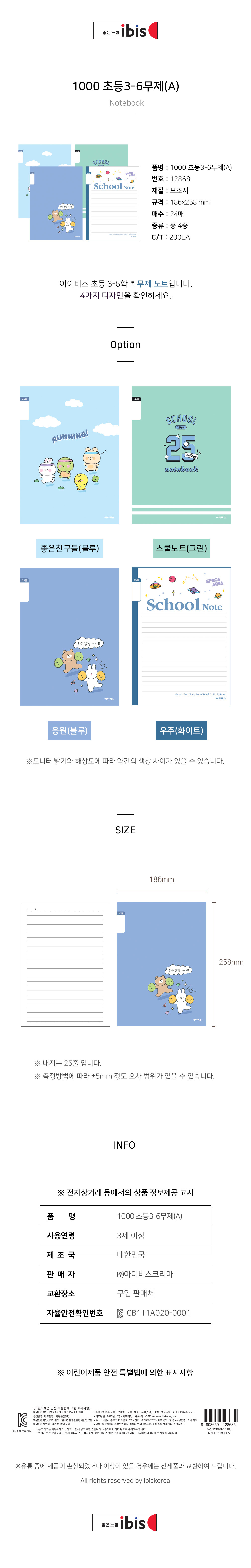 home > 노트/지제품 > 노트 > 초등노트 > 1000 초등3-6무제(A)